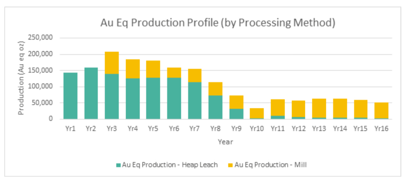 The reserve plan supports initial heap leach production followed by mill construction in year 3 to process non-oxide ore.