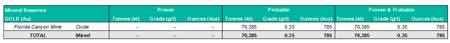Non-oxide (mill): 0.20 g/t at Florida Mountain and 0.30 g/t at DeLamar