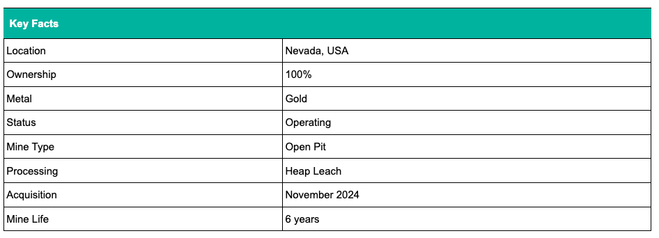 Florida Canyon is a conventional open-pit operation using both two-stage crushed ore and ROM (run-of-mine) ore placed on heap leach pads. Recovery is achieved through drip irrigation and carbon-in-column (CIC) processing. Final doré production is handled on-site. Recent investments in leach pad expansion (Phase III) and a new CIC circuit commissioned in late 2024 are aimed at improving metal recoveries and inventory turnover. The current life-of-mine plan outlines approximately six years of production, though Integra is actively pursuing several initiatives to extend mine life through resource conversion and near-pit exploration.