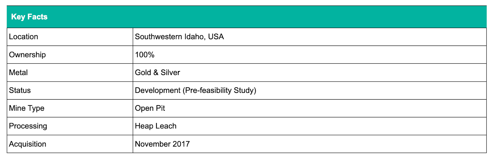 Based on: “Technical Report and Preliminary Feasibility Study for the DeLamar and Florida Mountain Gold-Silver Project, Owyhee County, Idaho, USA,” prepared by RESPEC and others, effective date January 24, 2022; reproduced in the updated NI 43-101 technical report dated August 25, 2023.