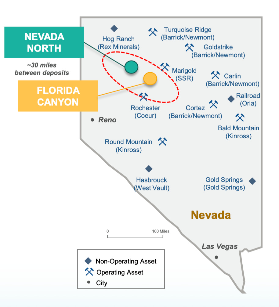 Integra Resources Corp. (TSXV: ITR | NYSE American: ITRG) is a U.S.-focused gold and silver company operating in the Great Basin region of the western United States. In late 2024, the company transitioned from developer to producer with the acquisition of the Florida Canyon Mine in Nevada—a conventional hard rock open-pit operation using both two-stage crushing and run-of-mine (ROM) heap leaching. Originally in continuous production from 1986 to 2011, Florida Canyon was restarted in 2016 and has been operating since. The asset includes a substantial land package of over 18,000 acres, encompassing both the Florida Canyon and the nearby Standard Mine.